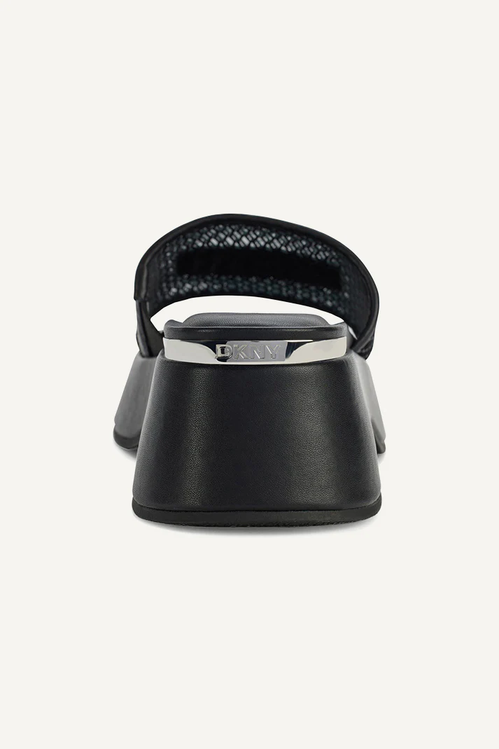 Step up your style game with the IREDELL PLATFORM SLIDE by DKNY. These chic black slides offer unparalleled comfort and elevated design, perfect for effortless sophistication. Ideal for any occasion, they seamlessly blend fashion and function for the modern trendsetter.
