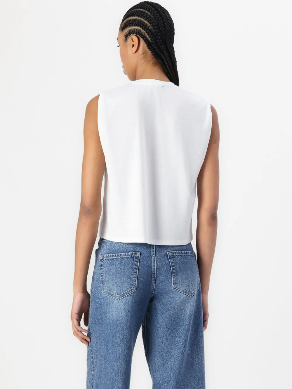 SLEEVELESS TISSUE KNIT LOGO TOP