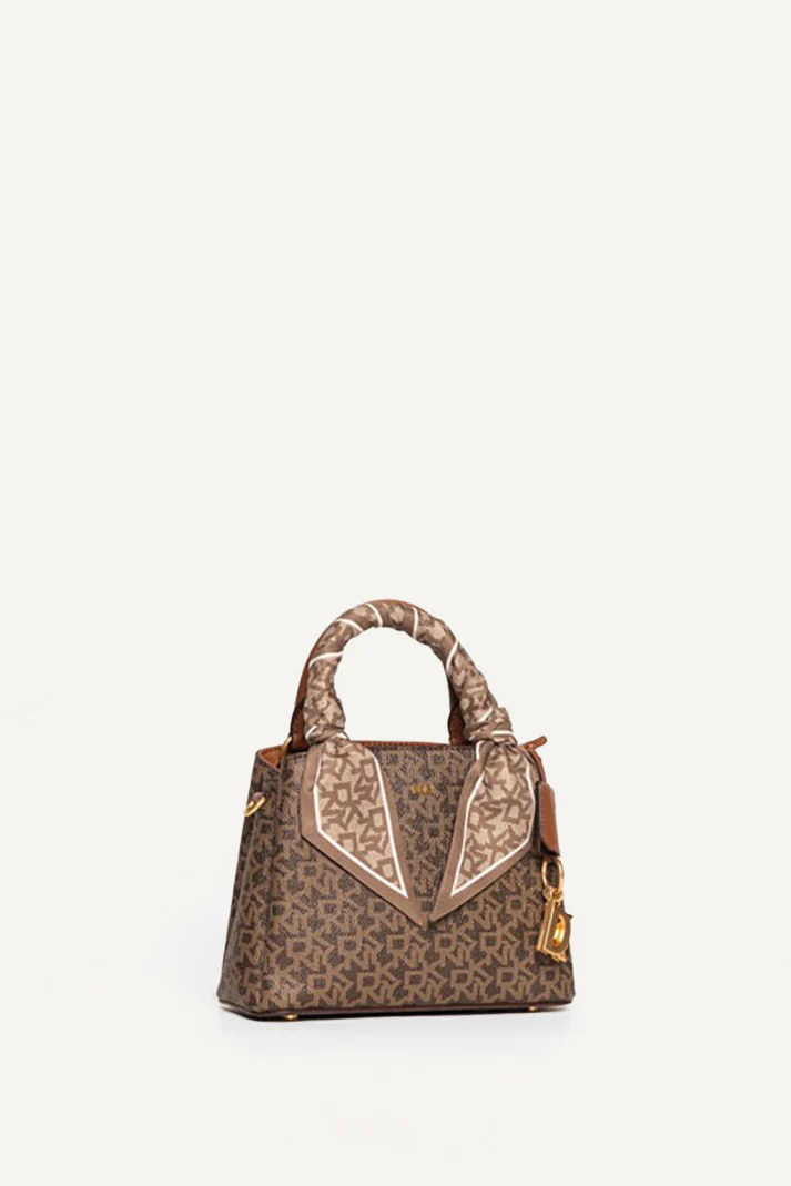 Embrace festive elegance with the DKNY RAMADAN MEDIUM SATCHEL in a warm caramel hue. Perfect for the holiday season, this chic satchel combines timeless style and functionality, making it an essential accessory for any fashion-forward wardrobe. Ideal for everyday sophistication.