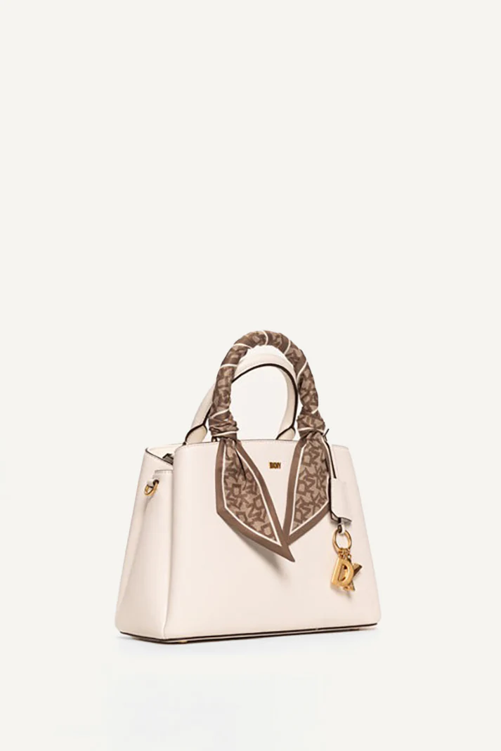 Elevate your holiday ensemble with the elegant DKNY Ramadan Medium Satchel in pristine white. Perfect for festive gatherings, this chic bag combines fashion and function, making it an ideal accessory to celebrate the season in style. Embrace timeless sophistication.