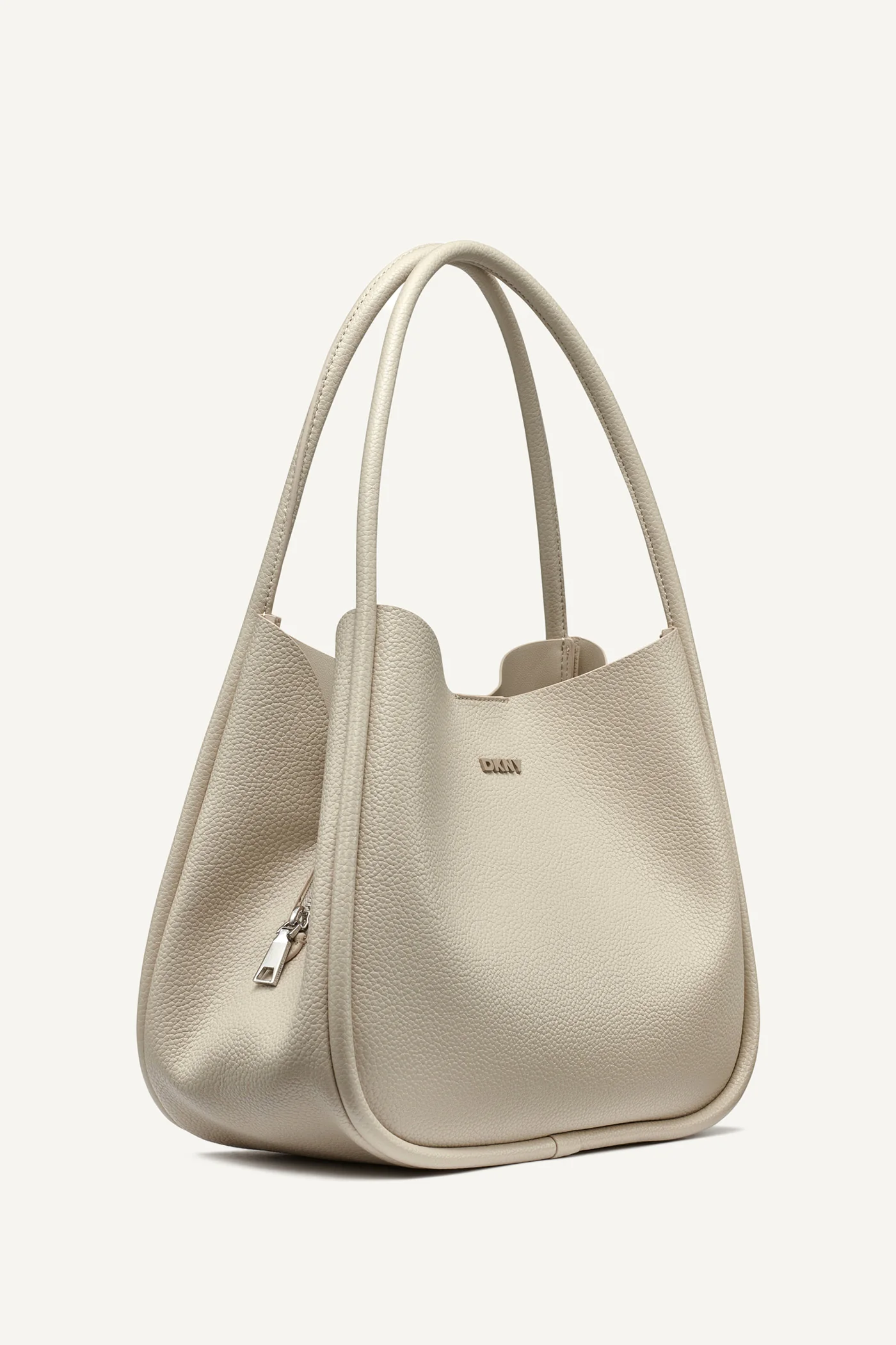 Effortlessly chic and versatile, the DKNY Capri Hobo Handbag is the perfect blend of style and functionality. Perfect for any occasion, its compact design features premium craftsmanship, spacious interior, and sleek details, ensuring a chic and sophisticated addition to your wardrobe.